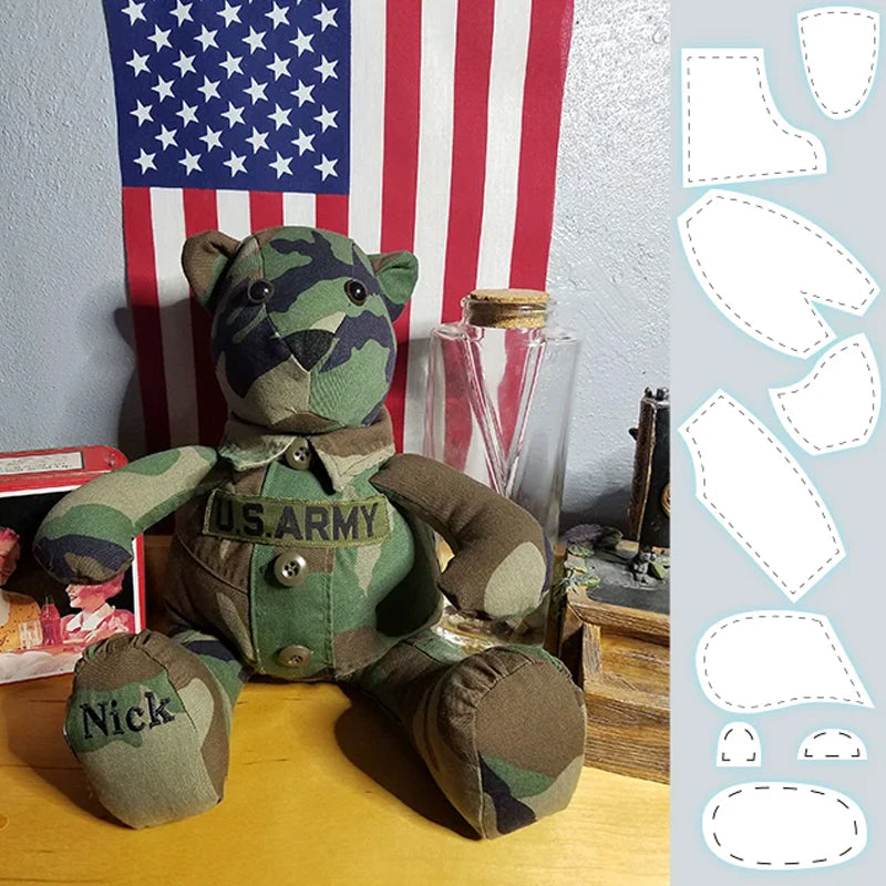 • Memory Bear made from the clothing of a loved one who passed to help keep their memory alive. Can also be made from a child’s clothing to preserve their childhood memories. *Hand made using a huggable patterns templates.